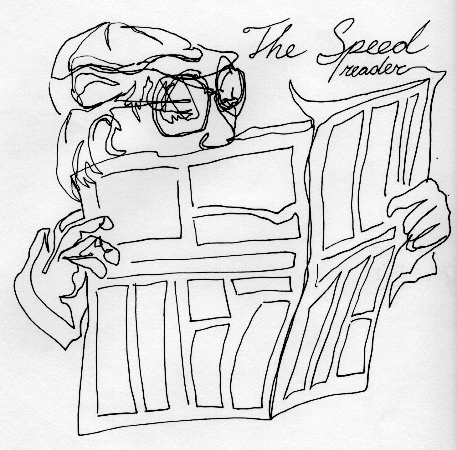 Yesterday I sat across from a peculiar man who was reading a newspaper in a way that could only be described as violent. At his small table, he tore through the pages of the paper with all the conviction of a man possessed, as though each article were only six word stories each and reading them all was a matter of life or death. Could the stories have been so distressing that he had to look up every few moments to make sure no one was staring at him for too long? Was each article actually holding a secret message meant only for him and could only be found out through the art of “skimming”?